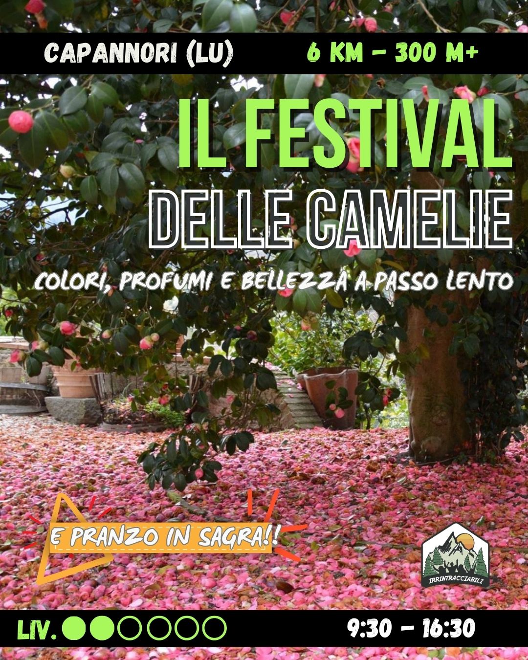 Festival delle Camelie, il Camellietum Compitese (il più grande d’Europa), giardini storici aperti, borgo di Sant’Andrea di Compito, fioriture spettacolari, Chiusa Borrini e coltivazione di tè, visita guidata ambientale, atmosfera rilassata, giornata slow nella natura