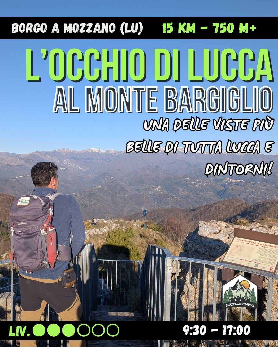 ☄️ Hotpoints: la Rocca di Mozzano, i boschi di castagno, le antiche carrarecce, il romitorio di San Bartolomeo, il Monte Bargiglio, l’Occhio di Lucca, viste aperte sulla Val di Lima, panorama a 360°, storia a sfare e trekking da premio